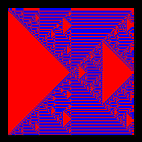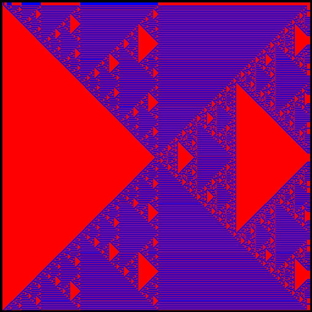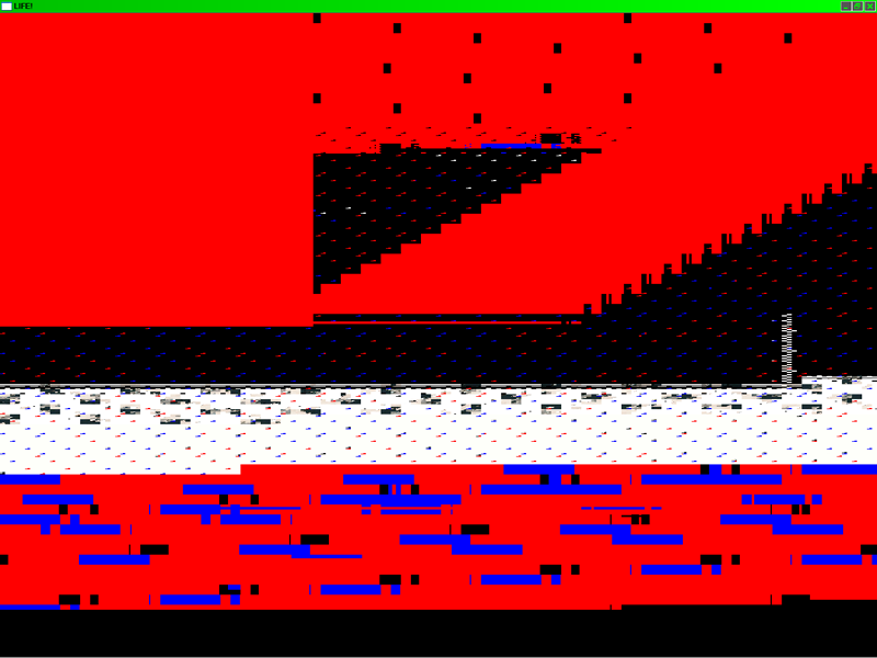 My first experiment while learning 2D OpenGL resulted in these images. I’m not exactly sure how this happened, but the system creates cellular automata style images.
