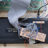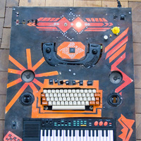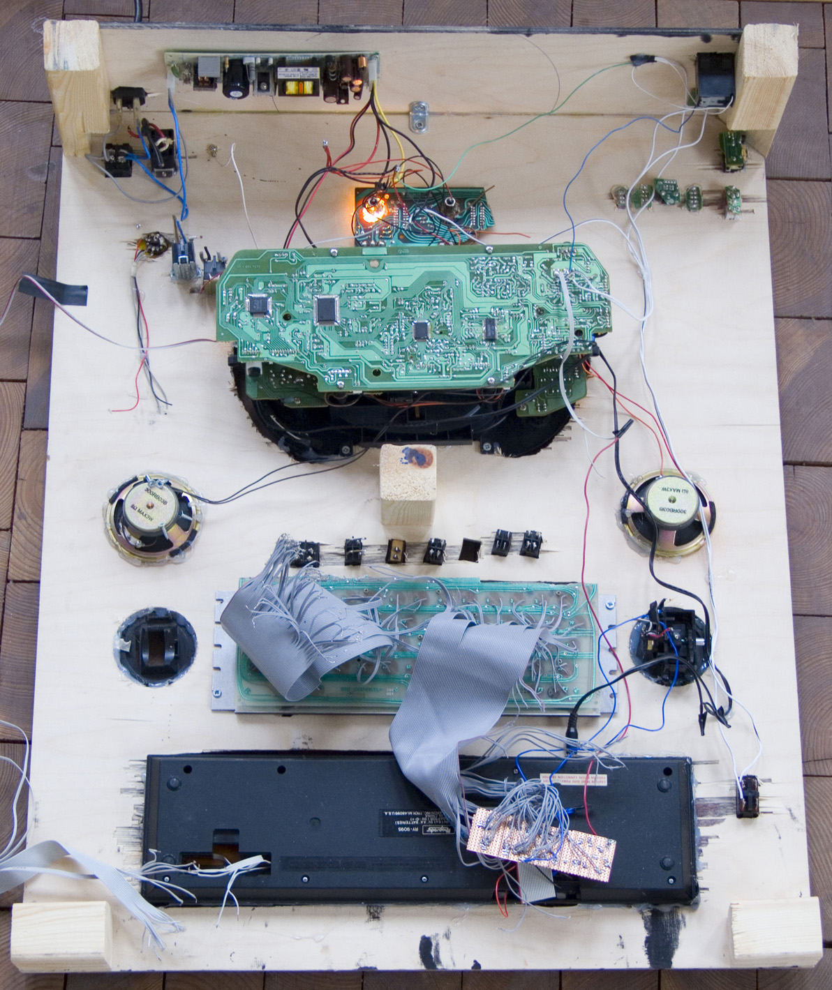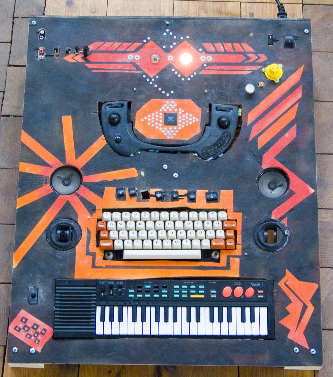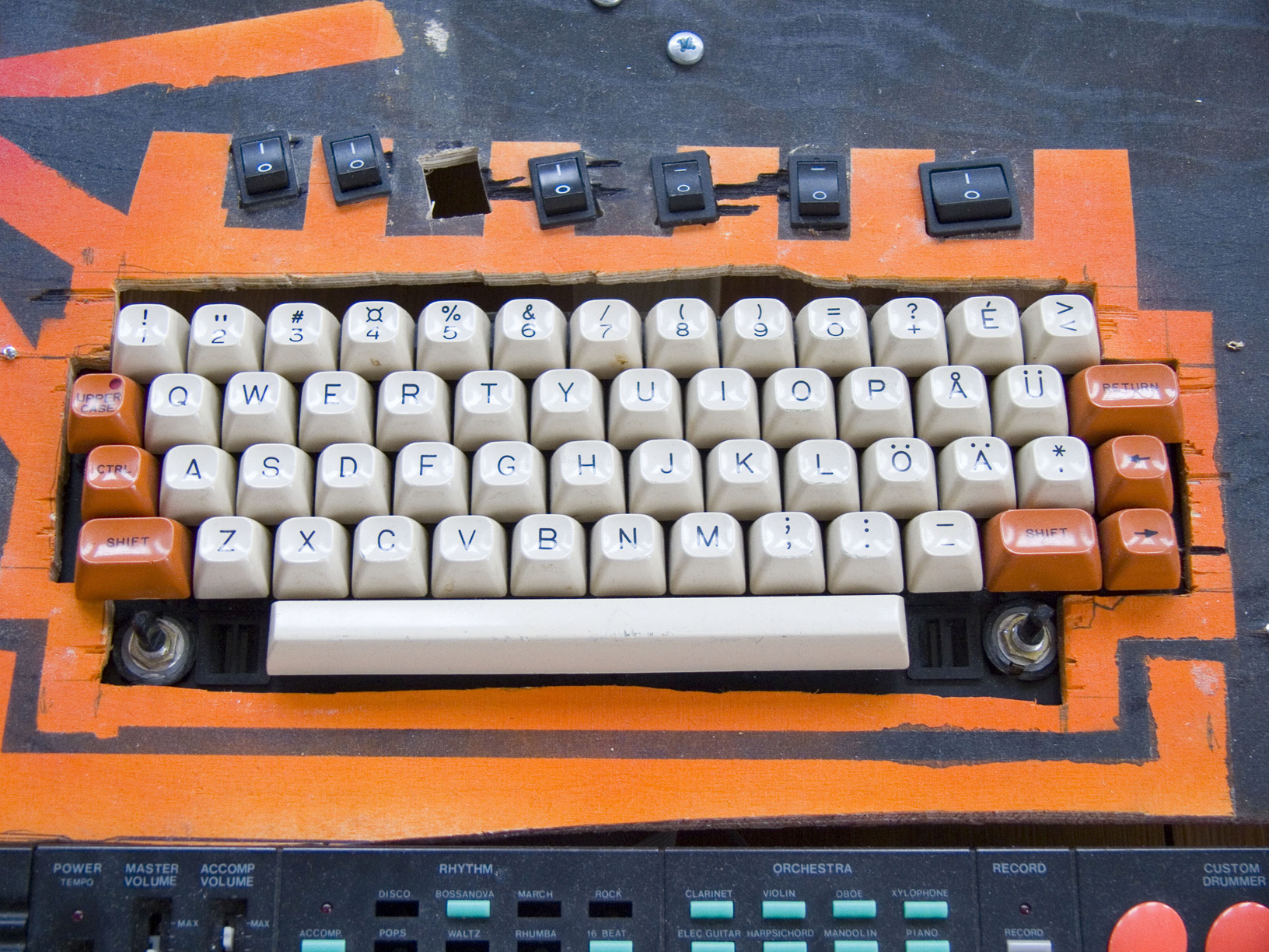 Computer keyboard controls on short circuits within the donor keyboard did not work as well as anticipated, yet the various musical farts and analog drum sounds are divine.