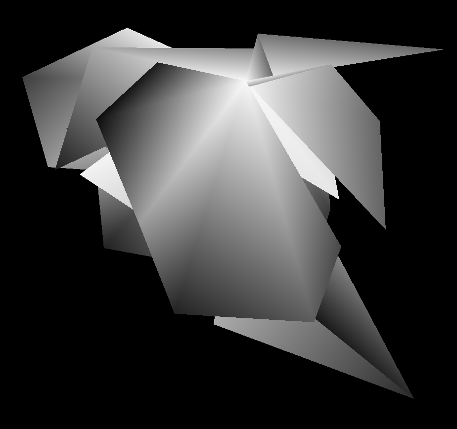 I approached the problem in a simple sense. A folded sheet of paper begins as a flat plane. Vertexes are added and the plane is folded. In OpenGL, a polygon is drawn via a set of points. It can begin as a flat shape with the drawing in order, the edges drawn from Point A to Point B, and so on. If the the edges are concave, then the shape will be flat. If a point is “out of order” or convex, then the polygon is “folded” in a sense and, to me, can add a sense of depth.